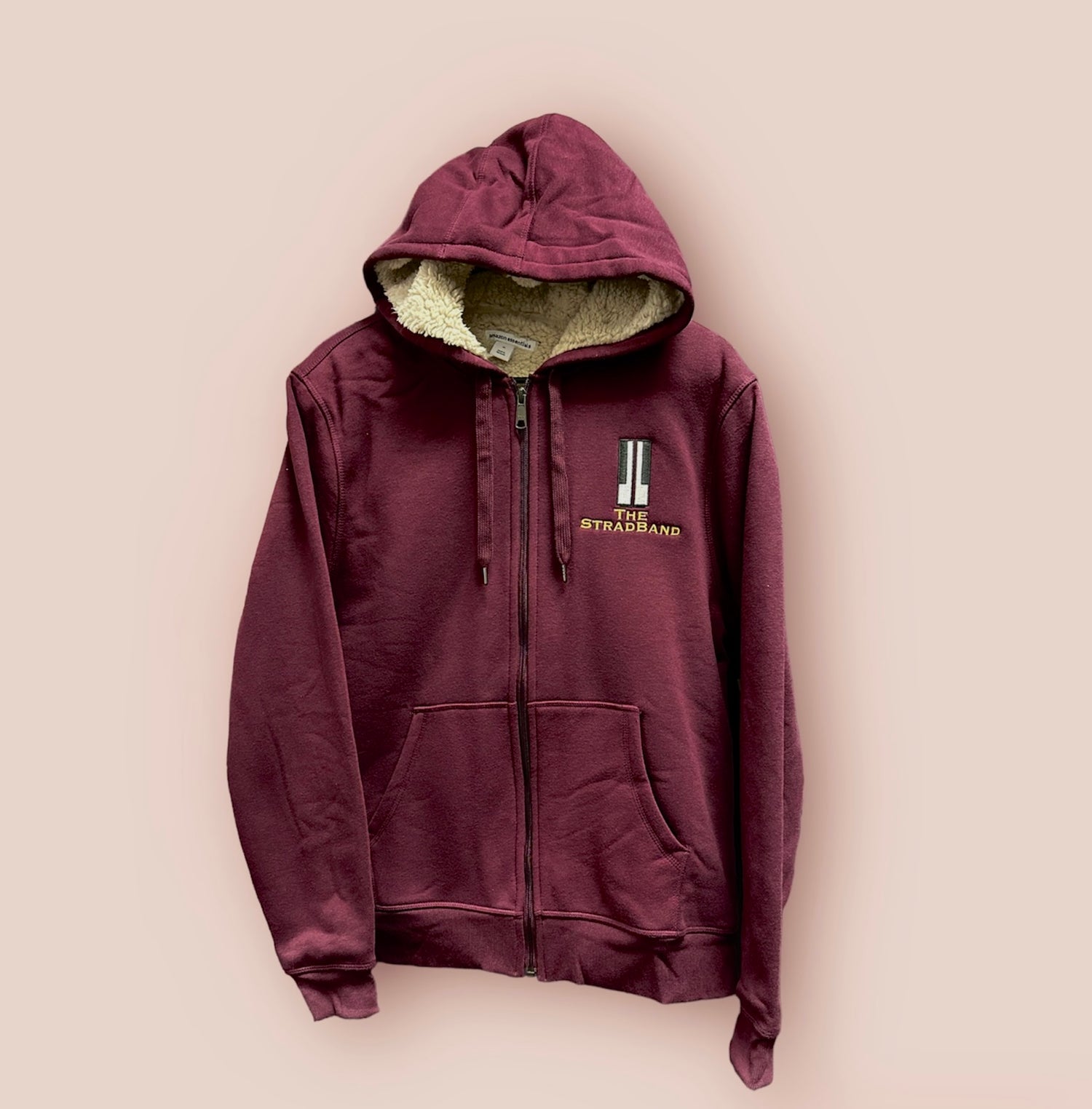 Stay warm and cozy in The StradBand sherpa-lined full zip hooded fleece sweatshirt. With a full zip and cozy sherpa lining, this sweatshirt provides ultimate comfort and warmth. Perfect for chilly days, it's the perfect addition to your wardrobe.